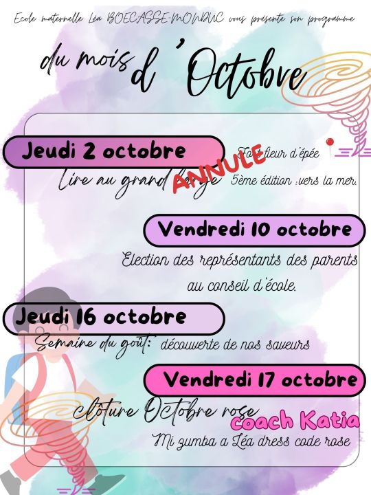 Nous vous communiquons le programme du mois d'octobre de Léa.
